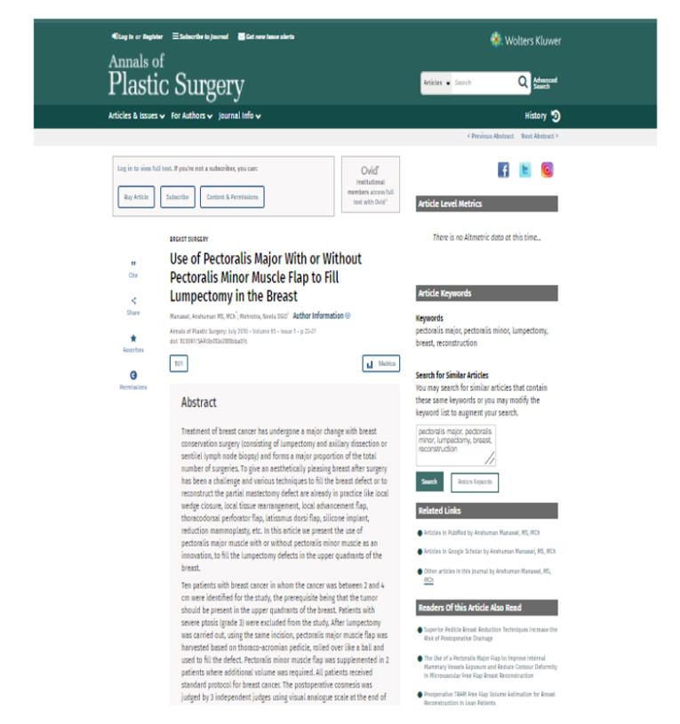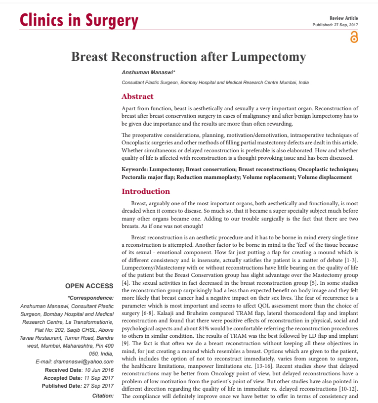 Dr. Anshuman is a Senior Consultant in the Department Of Plastic Surgery at the Bombay Hospital & Medical Research Centre, Mumbai, as well as at the Nanavati Super Speciality Hospital, Mumbai.